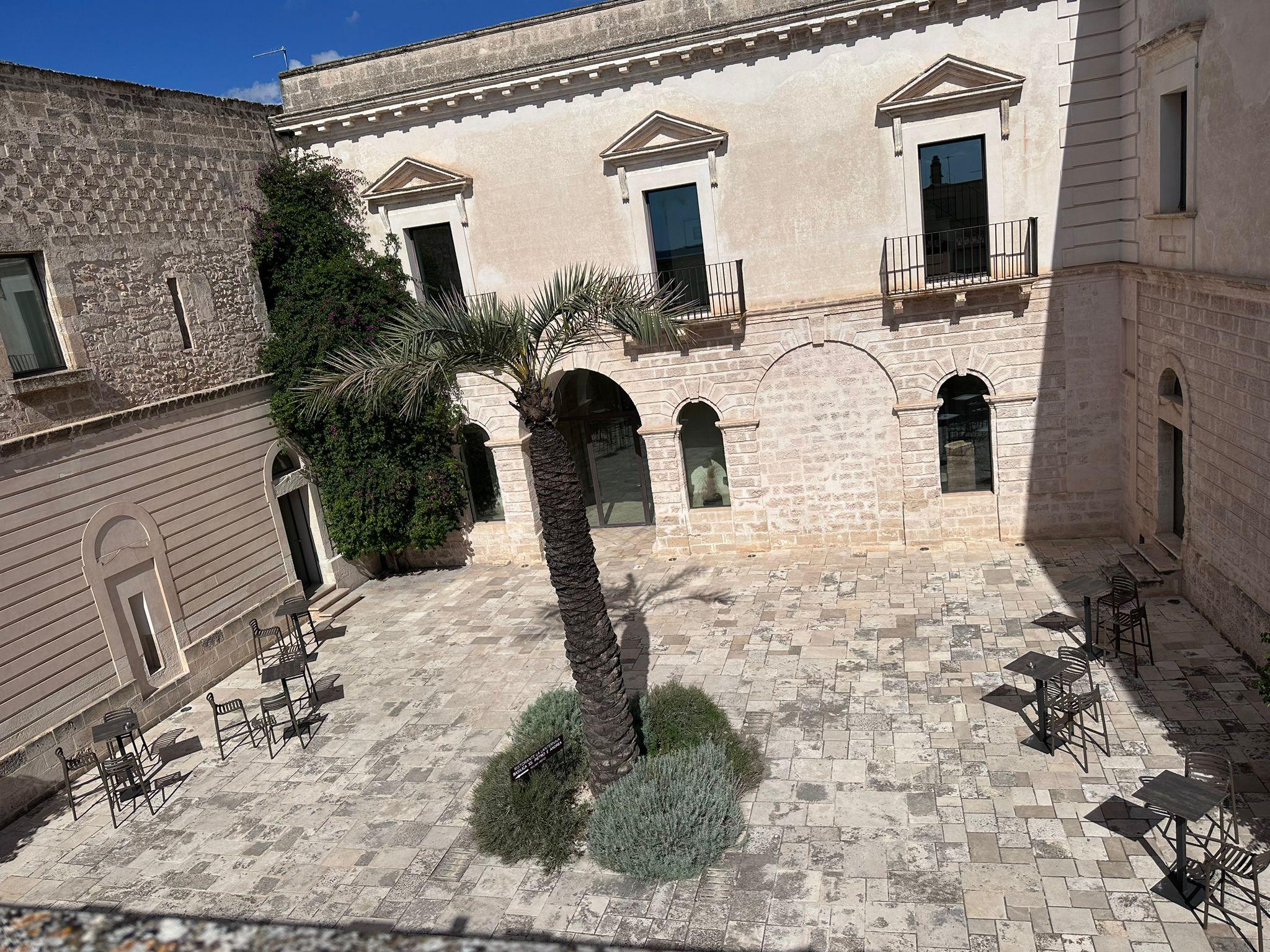 Ogni dettaglio racconta la Puglia più autentica: la pietra chiara, i profumi del mare, la luce che attraversa i chiostri e si posa sulle volte millenarie.